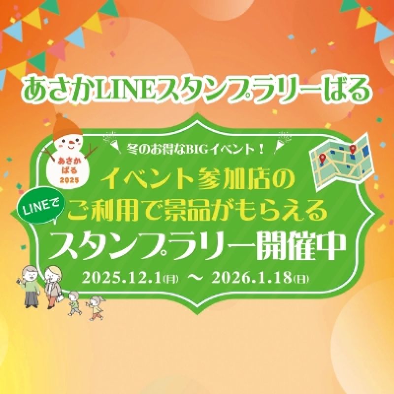 あさかLINEスタンプラリーばる -2025–が2025年12月1日(月)~2026年1月18日(日)…