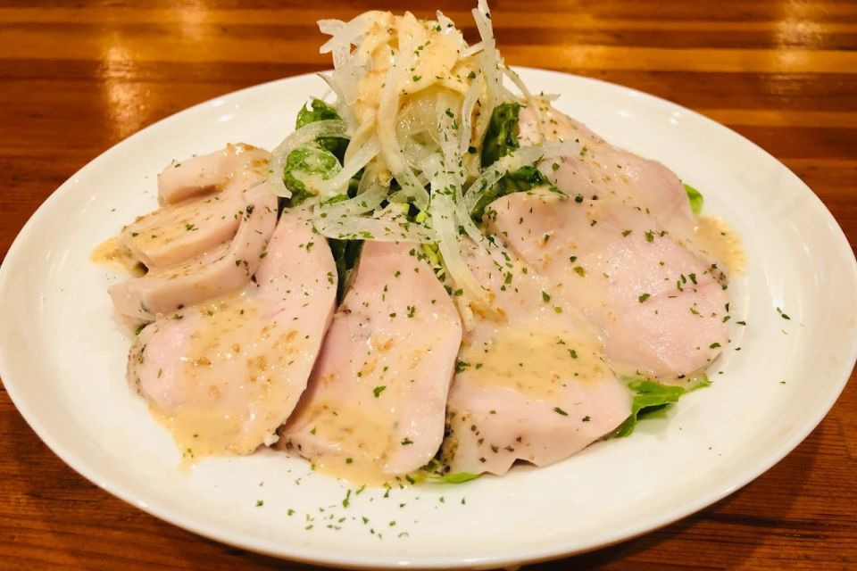 真空低温調理でしっとりぷりぷりに仕上げました。淡白であっさりした味わいながら、鶏むね肉が持つグルタミン酸やイノシン酸などの旨味成分を最大限に引き出しています。